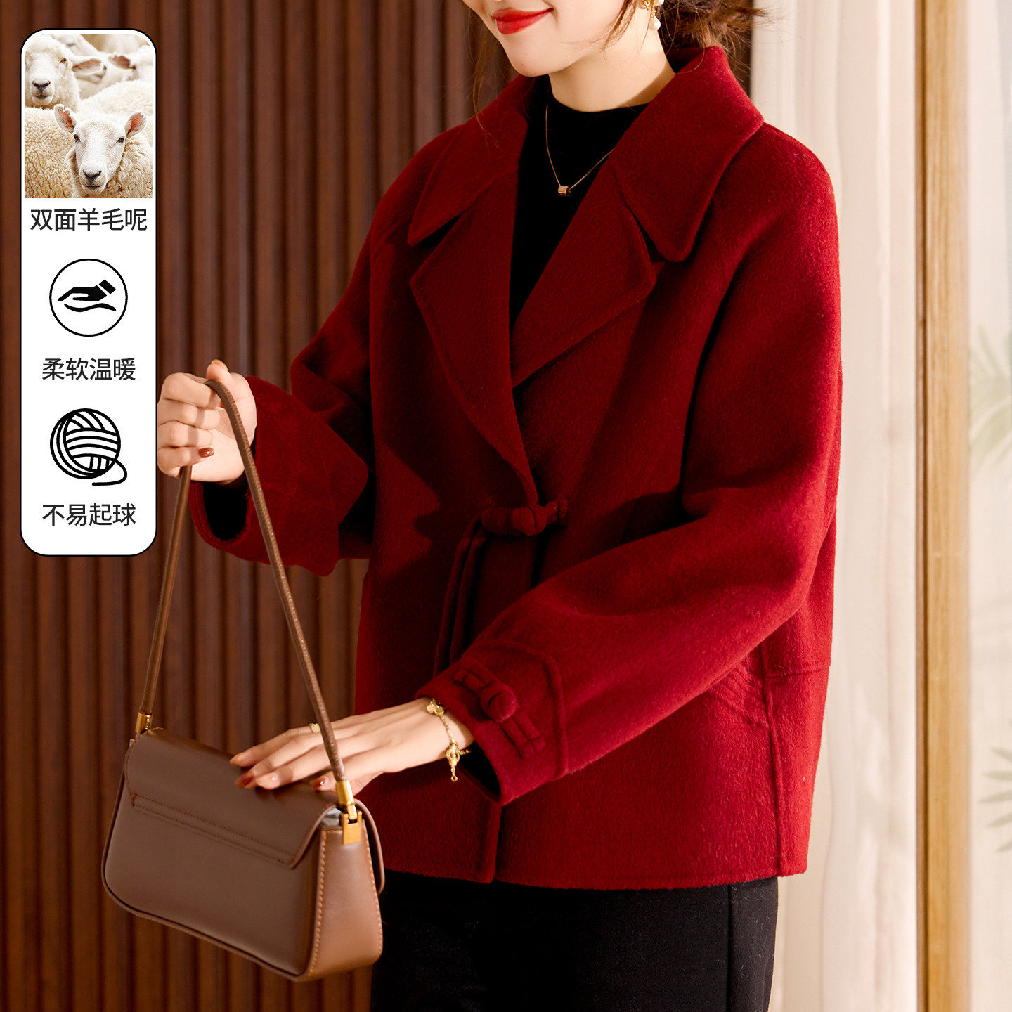 - 中老年毛呢外套女短款
