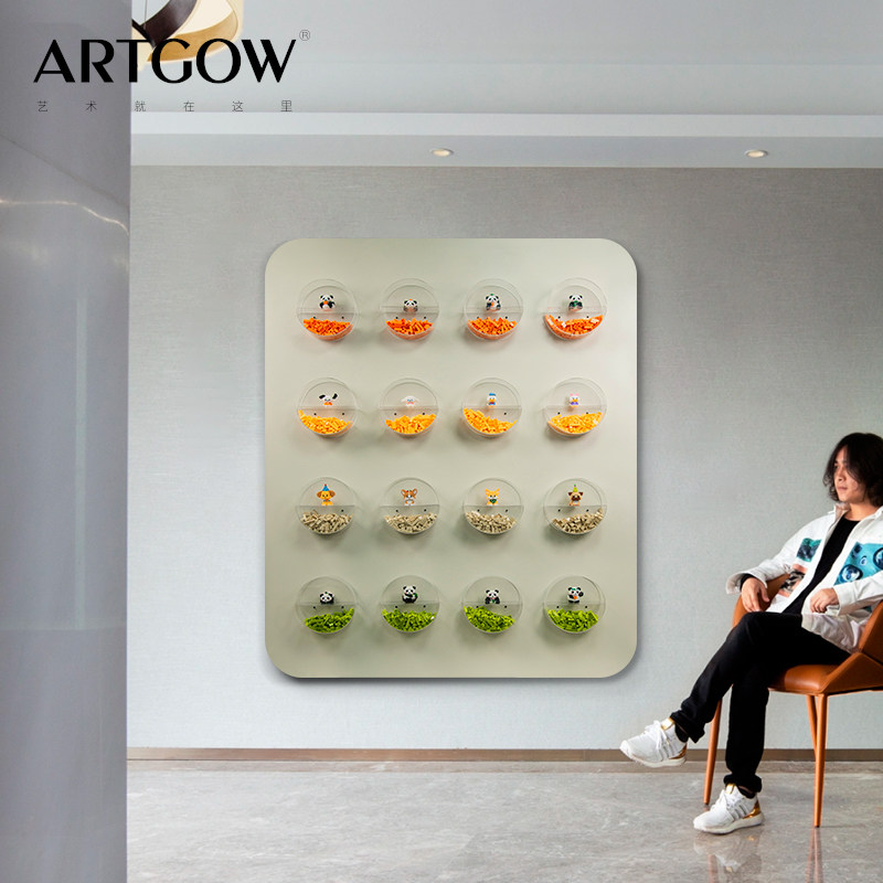 积木高乐高装饰画透明亚克力盒子圆形儿童挂画卧室3D立体床头壁画