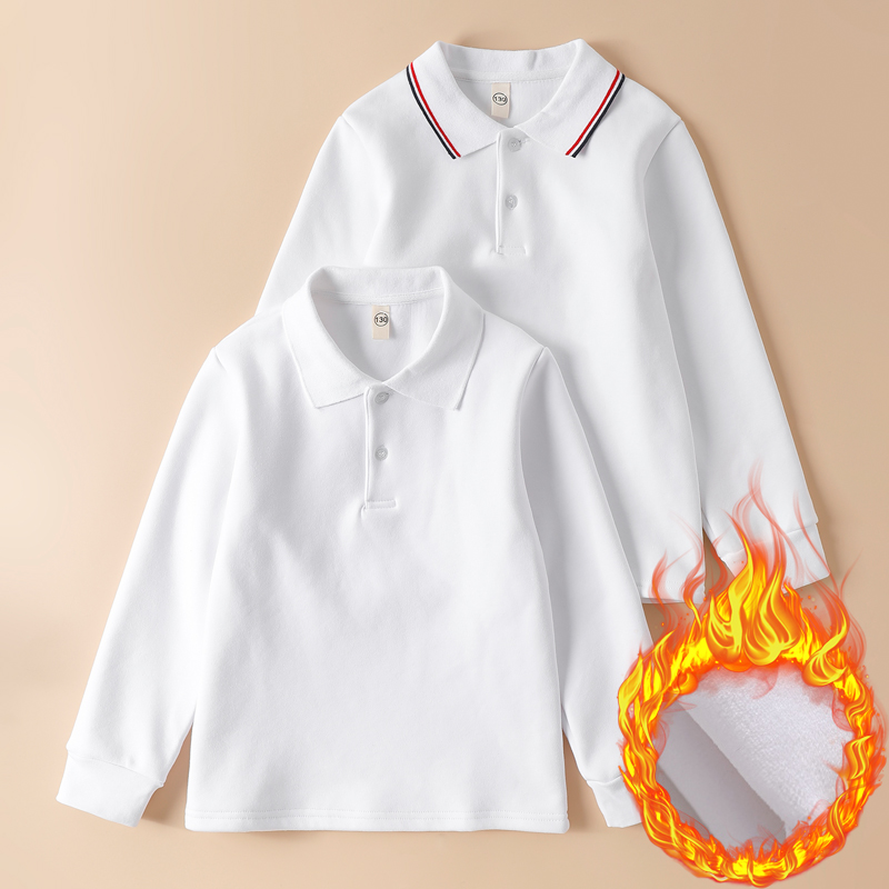 罗蒙男童polo衫长袖加绒t恤秋冬儿童纯白色棉小学生校服女打底衫