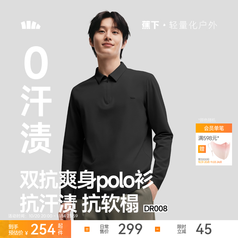 蕉下男士防汗渍Polo衫速干衣抑菌都市通勤长袖上衣秋休闲运动t恤