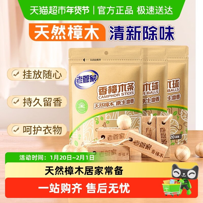 老管家香樟木条木球除螨喷雾衣橱柜衣物除味留香原生木条非樟脑丸