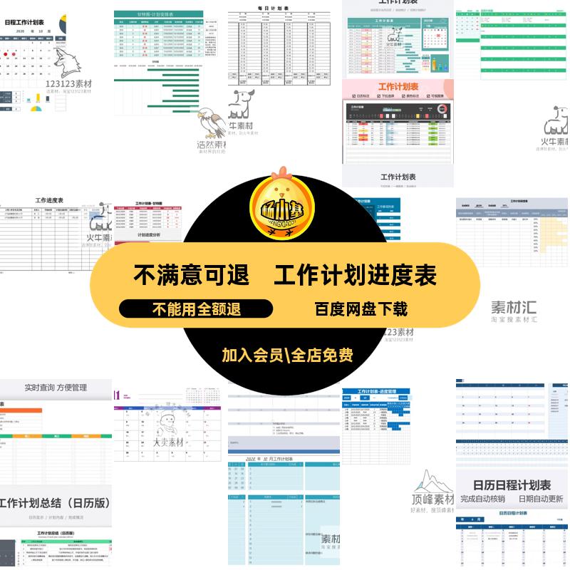 任务系统工作计划表格进度表白板模板甘特图台历excel日月管理