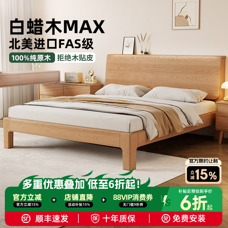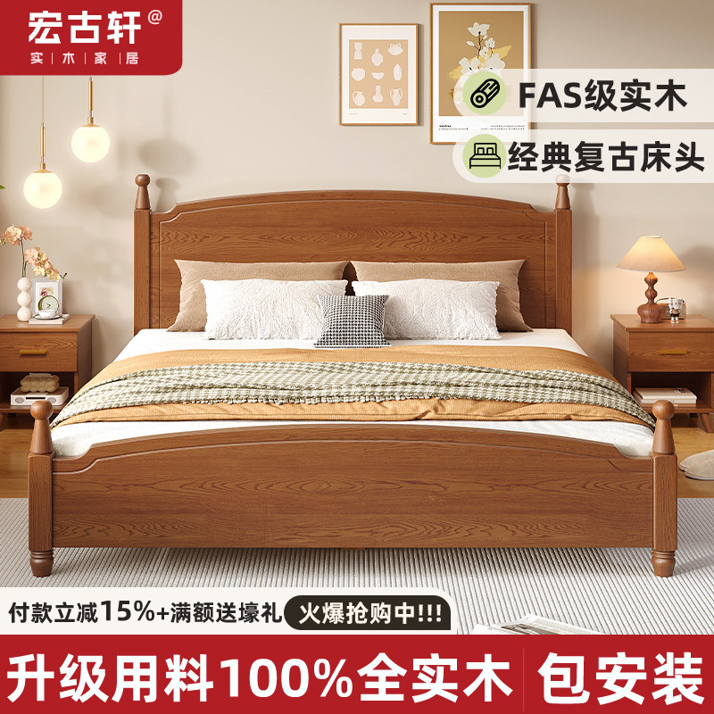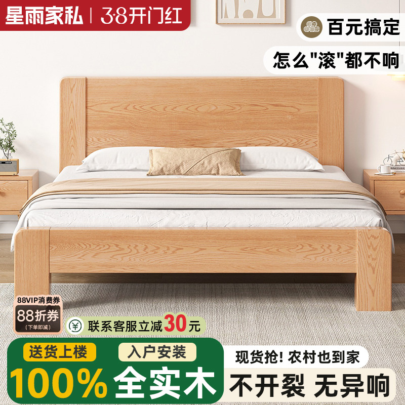 床全实木现代简约1.5米主卧轻奢双人床出租房用1.2橡木储物单人床