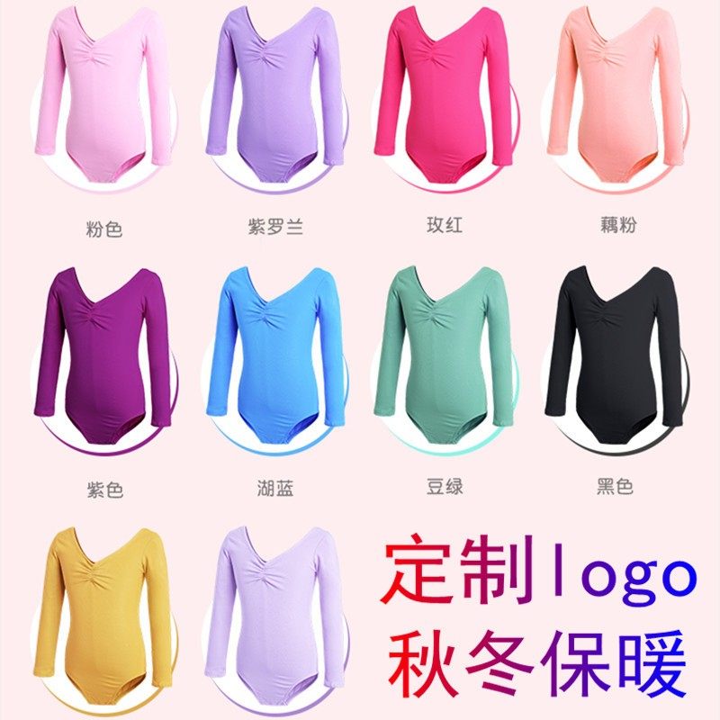 儿童舞蹈服幼儿中国舞练功形体考级女童秋冬长短袖连体服芭蕾舞裙