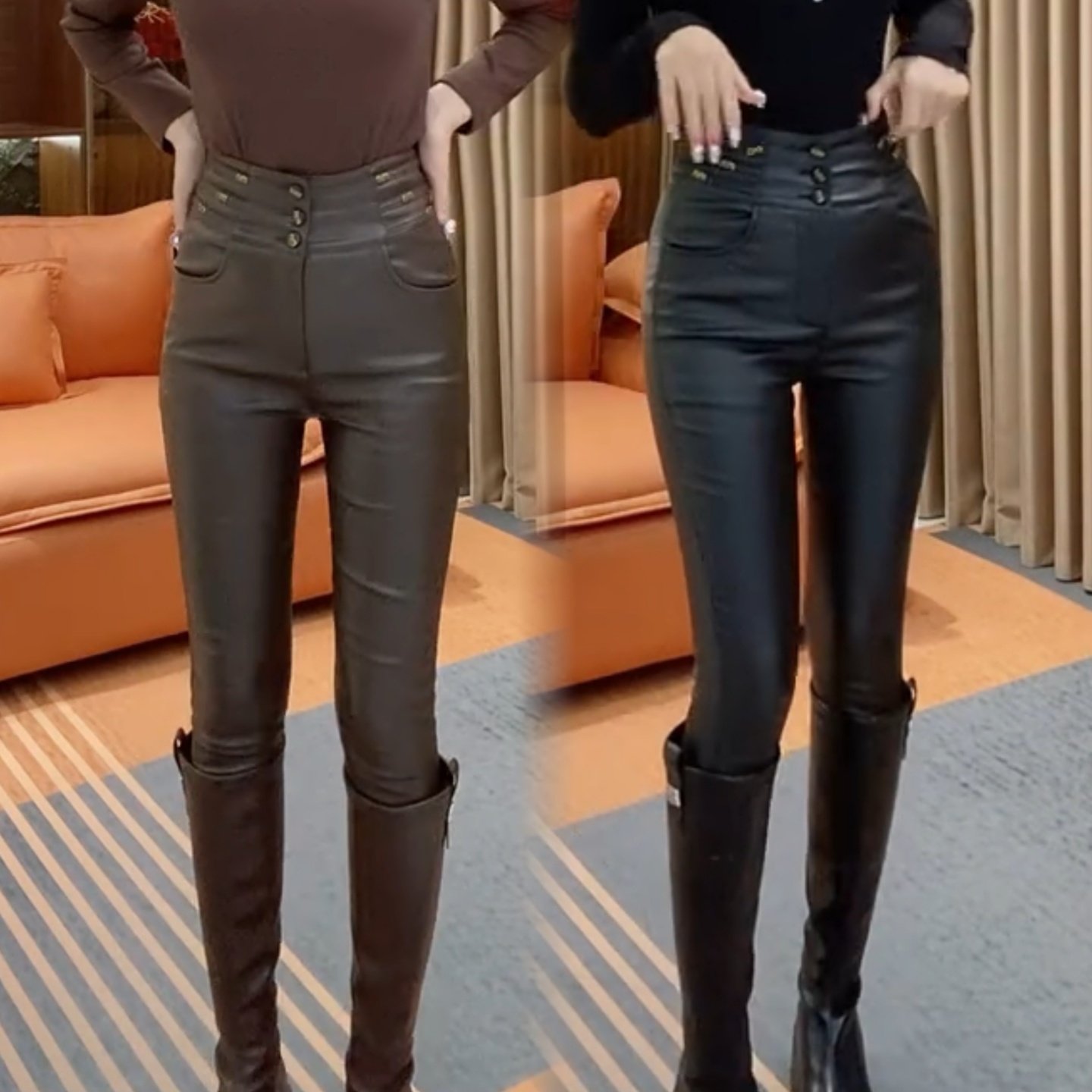 - 皮裤女加绒 高腰
