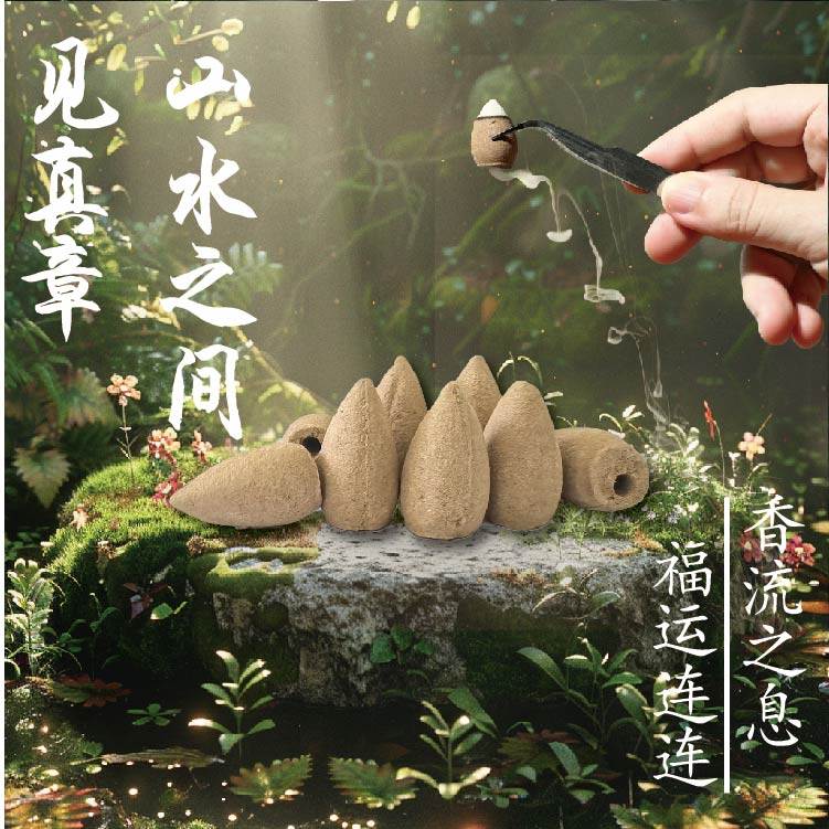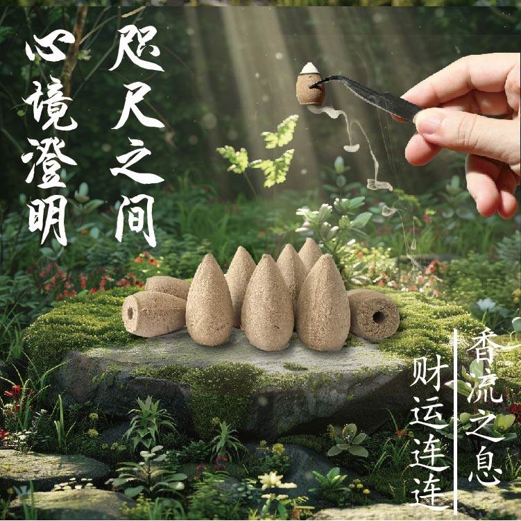 纯天然倒流烟香粒老山檀香沉香艾草崖柏香室内观烟倒流云香锥香薰