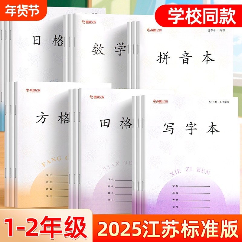 方格本子2年级统一生字作业本小学生专用1-江苏省统一凤凰拼音数学本写字一二年级方格日格本簿练字本批发