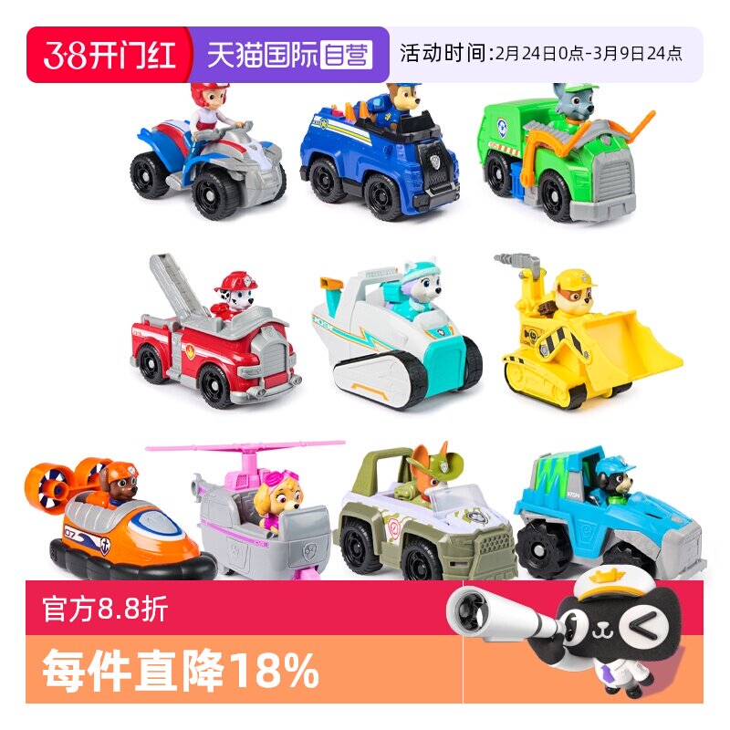 正版汪汪队立大功车玩具儿童全套救援巡逻汽车天天毛毛狗狗旺旺队