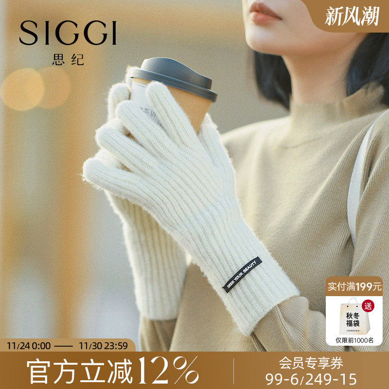 siggi 羊毛手套女冬无缝加长针织手套保暖防寒骑行触屏手套【秒】