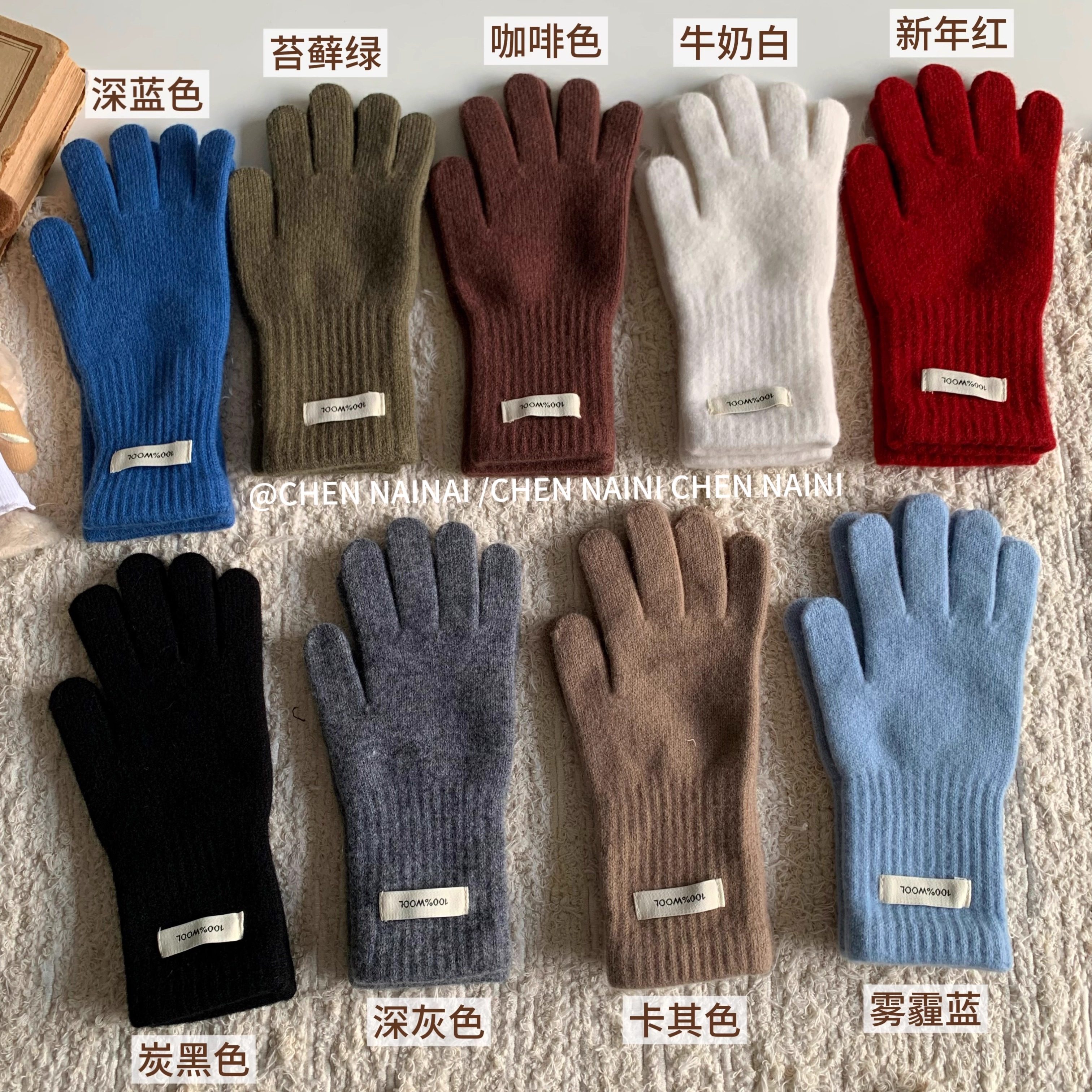 出口品质100%羊毛手套分指可触屏女冬季加厚保暖纯色骑行护手情侣