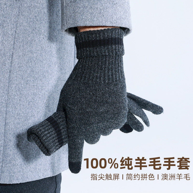 澳洲羊毛100%wool纯羊毛手套纯色秋冬针织保暖护手五指分指可触屏