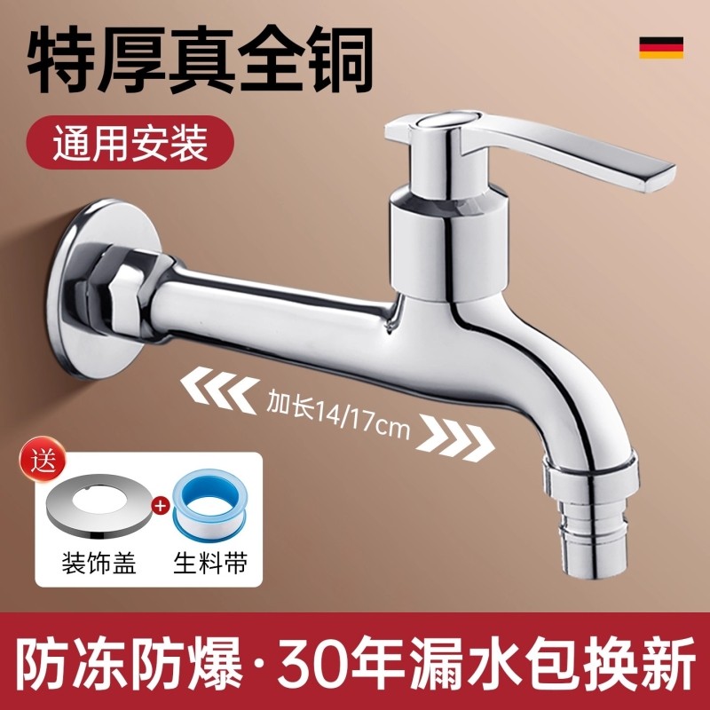 水龙头全铜洗衣机加长拖把池家用单冷4分专用入墙式接头水管防冻