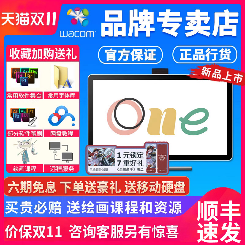 wacom one数位屏手绘屏dtc133手写绘图屏绘画屏网课数位板手绘板