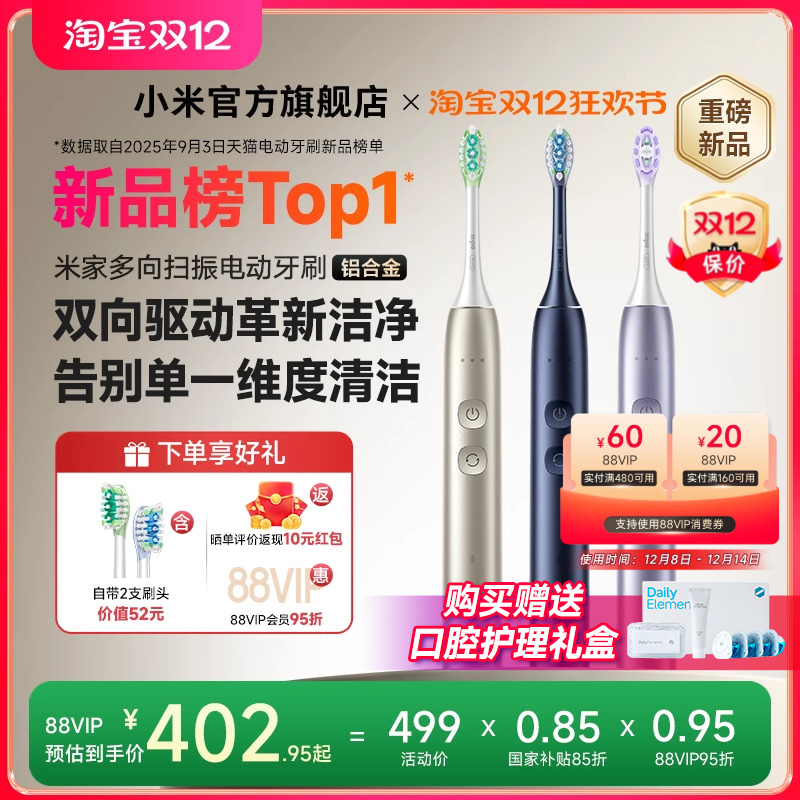 【政府补贴】小米官旗米家多向扫振电动牙刷成人护龈男女情侣礼物