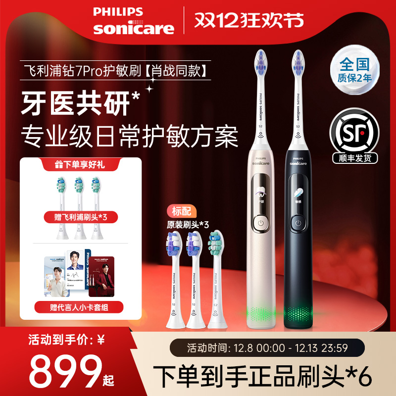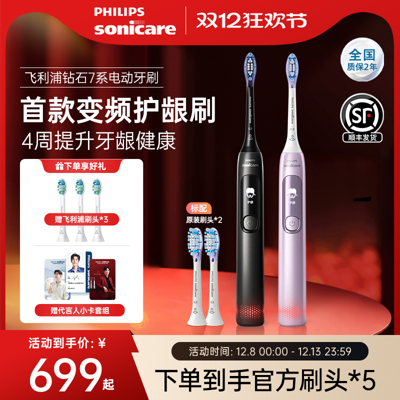 飞利浦电动牙刷成人声波钻石系列钻7Pro护敏刷情侣男女圣诞礼物