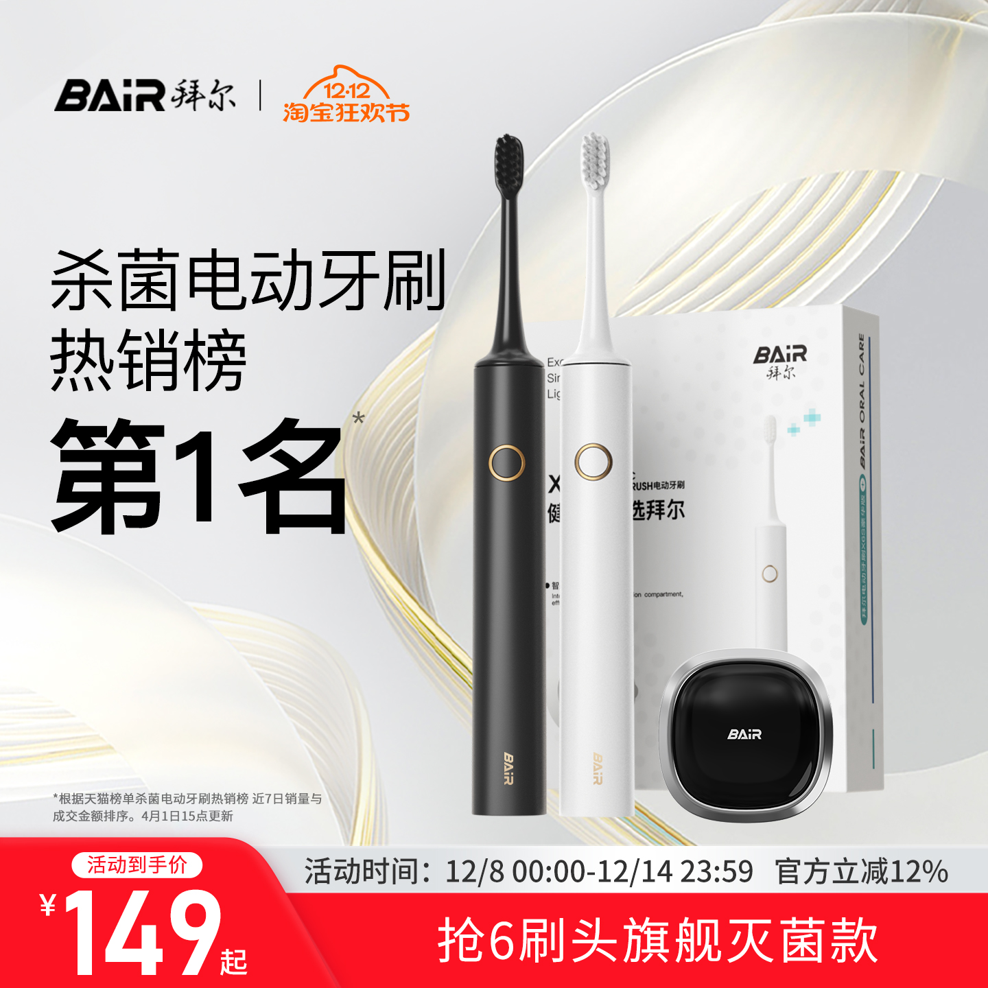 拜尔电动牙刷成人杀菌扫振全自动情侣款男女士专用礼品物套装智能