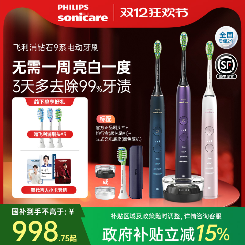 飞利浦电动牙刷成人声波智能软毛HX9911钻石9系旗舰官方正品情侣