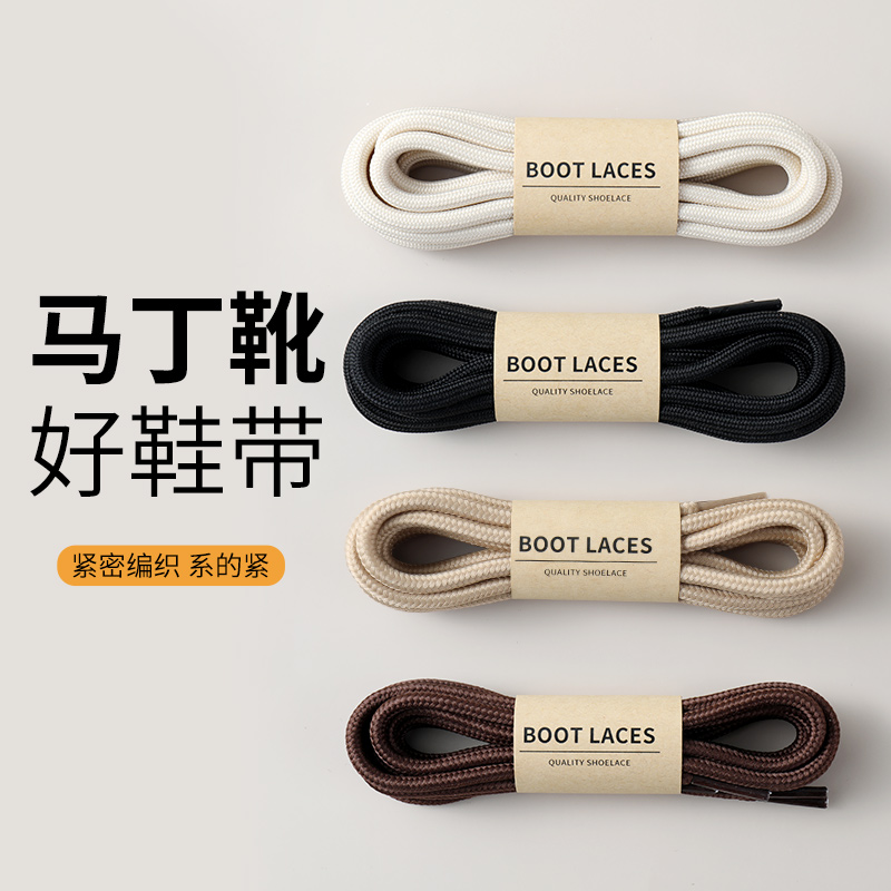 马丁靴鞋带英伦风皮鞋户外工装靴加粗圆形鞋绳米白卡其黑色男女款