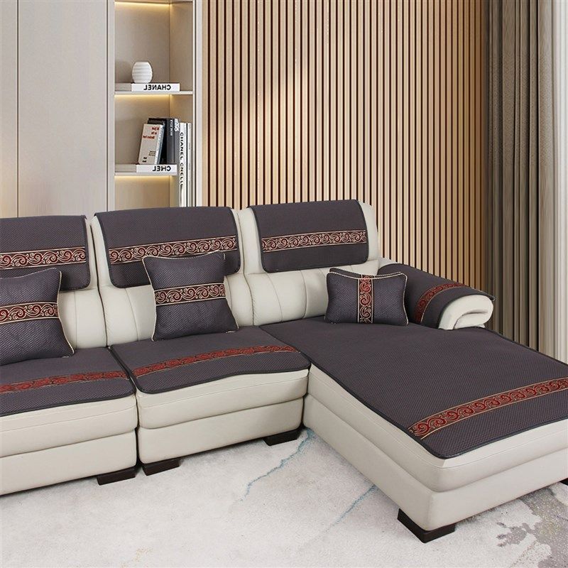 欧式真皮沙发垫四季通用三坐一贵妃垫子轻奢高级感凉席防滑沙发套