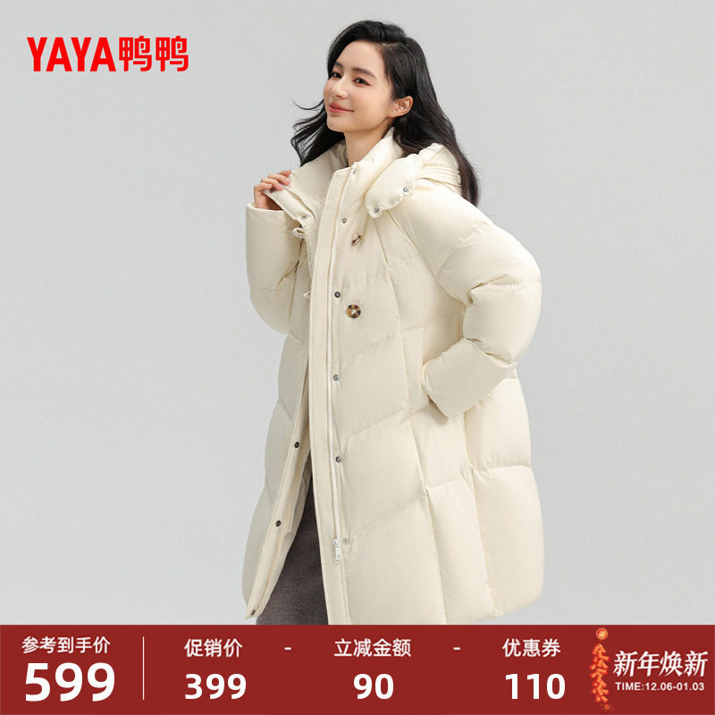 YAYA鸭鸭2025冬加厚时尚百搭休闲连帽潮流宽松女士中长款羽绒服
