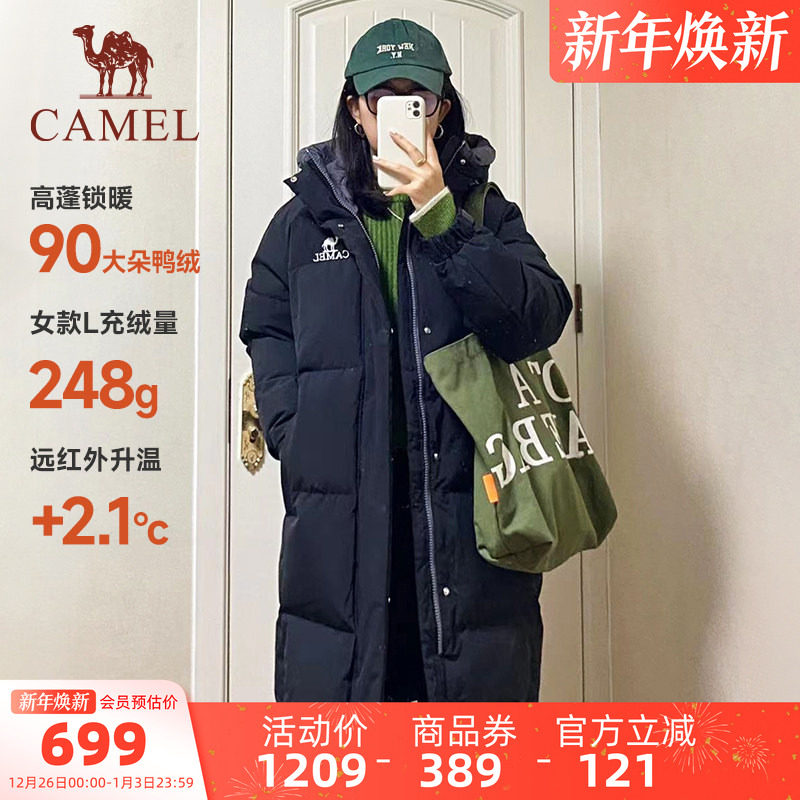 骆驼运动羽绒服中长款冬季女士鸭绒远红外升温保暖防风加厚外套男