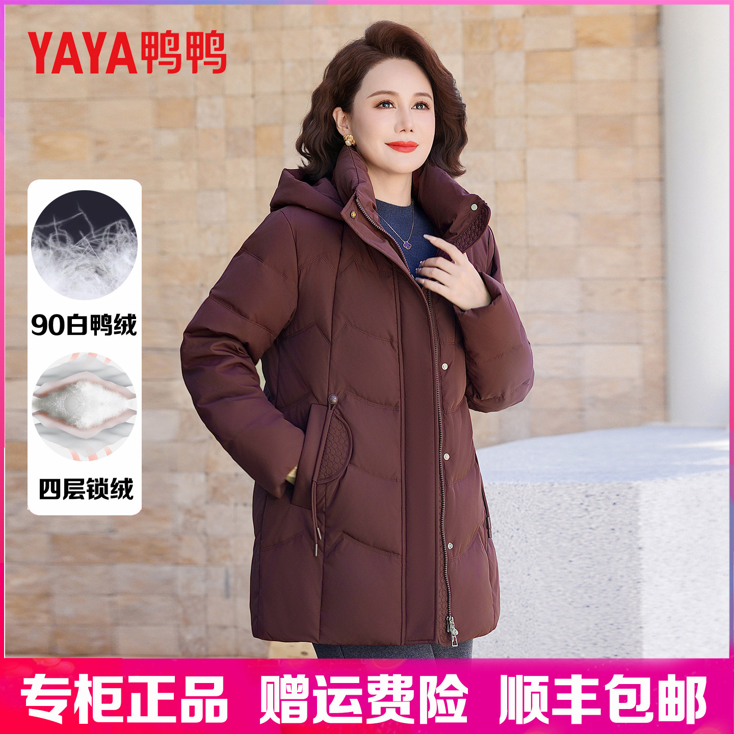 鸭鸭羽绒服女中长款2025冬季新款中老年加厚白鸭绒大码妈妈装外套