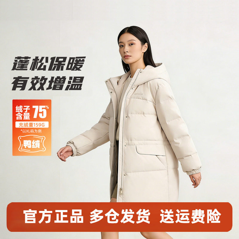 乔丹中长款羽绒服女子冬季保暖加厚御寒防泼水防风抗静电外套上衣