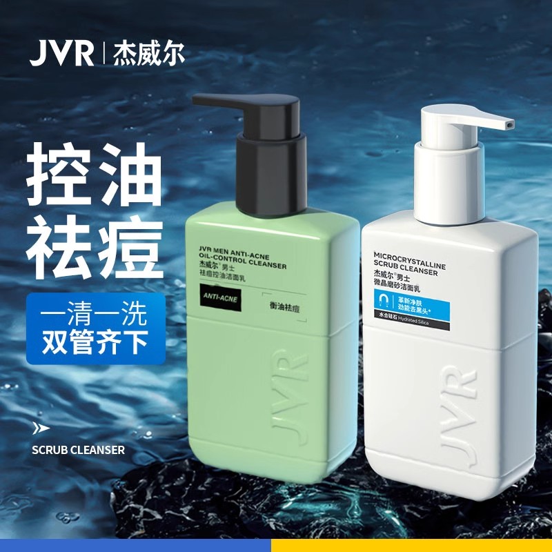杰威尔男士专用洗面奶青少年去黑头祛痘控油洁面乳液夏季清爽套装