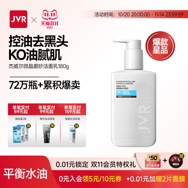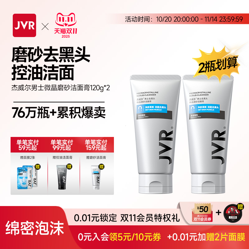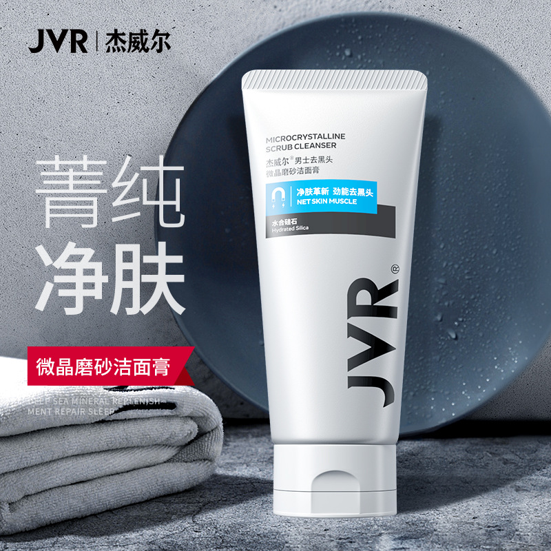 杰威尔男士洗面奶控油去豆黑头深层清洁保湿微晶磨砂洁面乳护肤品