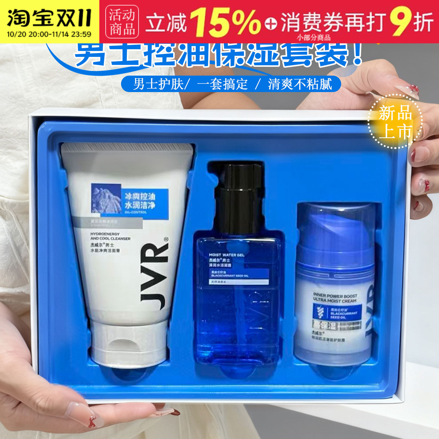 jvr杰威尔男士补水护肤品套装面霜爽肤水乳洗面奶洁面乳保湿凝露