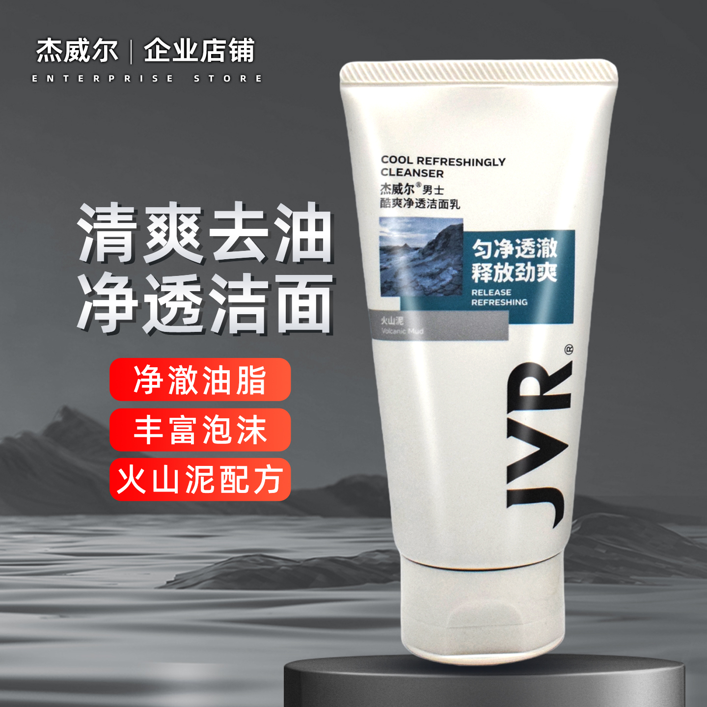 杰威尔男士矿物泥控油磨砂洁面乳洗面奶保湿补水清洁皮肤清洁毛孔