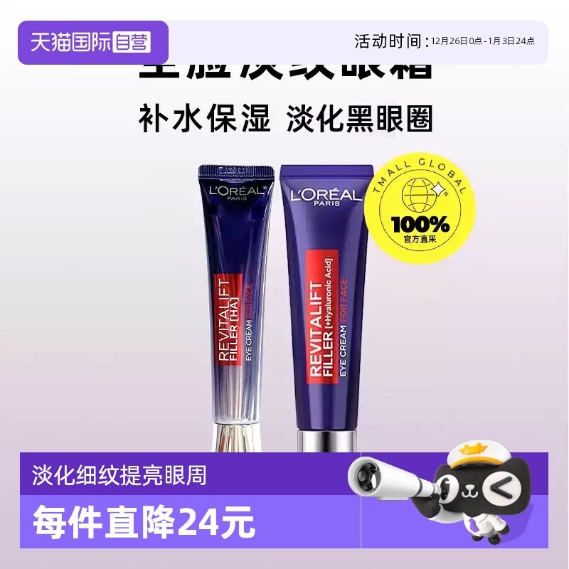 2支欧莱雅眼霜紫熨斗去淡化细纹黑眼圈袋抗皱紧致正品官方旗舰店