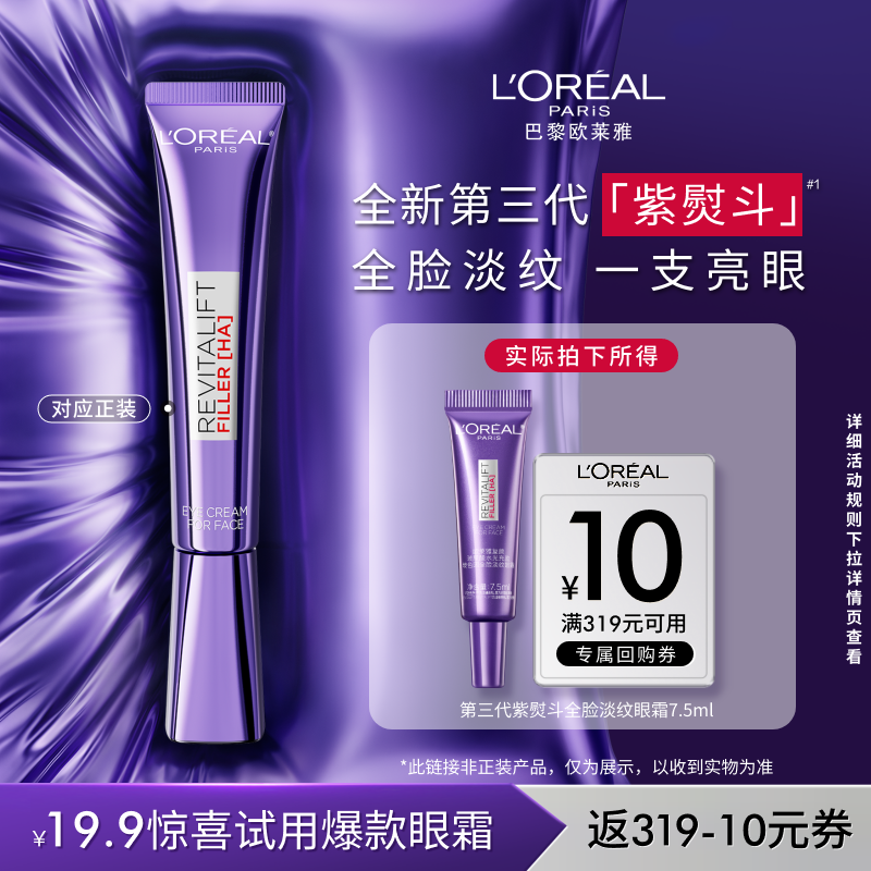 欧莱雅紫熨斗眼霜小样抗皱紧致衰老淡化细纹黑眼圈官方正品旗舰店