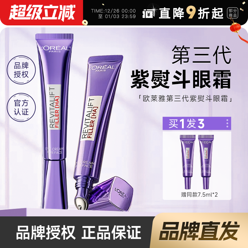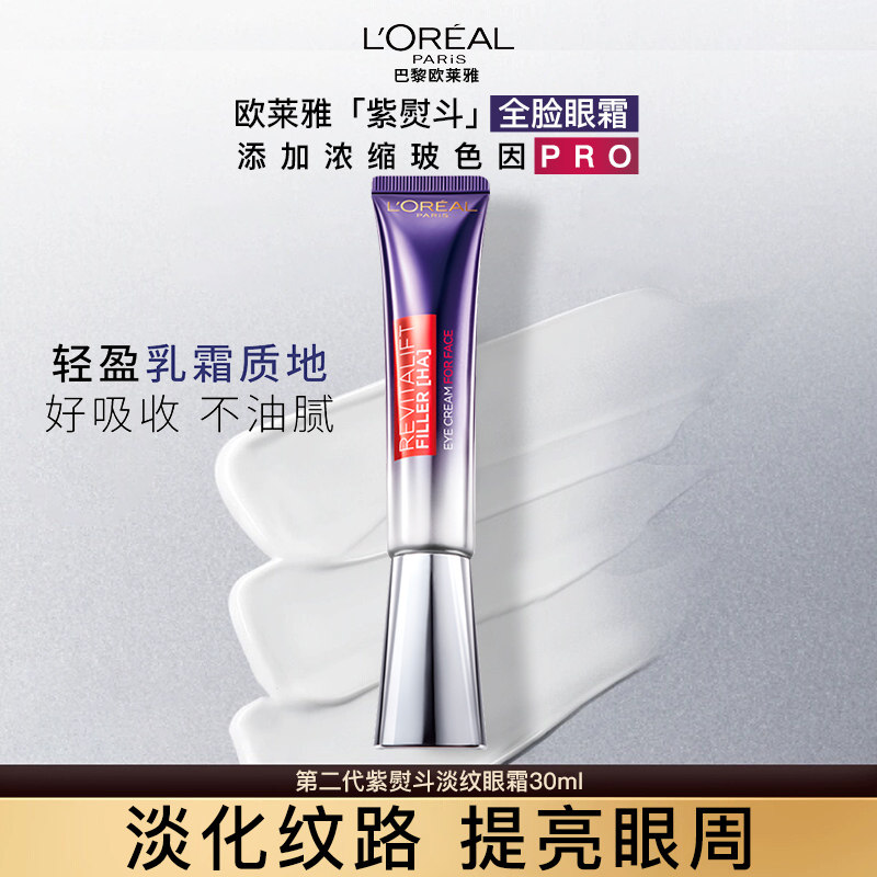 欧莱雅眼霜紫熨斗淡化细纹黑眼圈抗皱提拉紧致衰老正品官方旗舰店