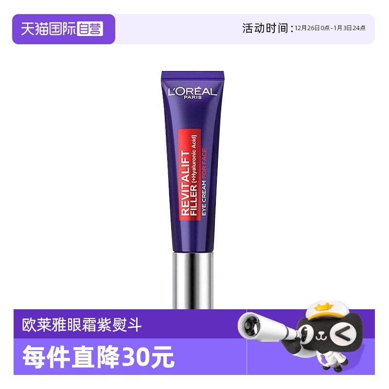 【自营】L'OREAL欧莱雅眼霜紫熨斗30ml 淡化眼纹眼圈提拉紧致正品