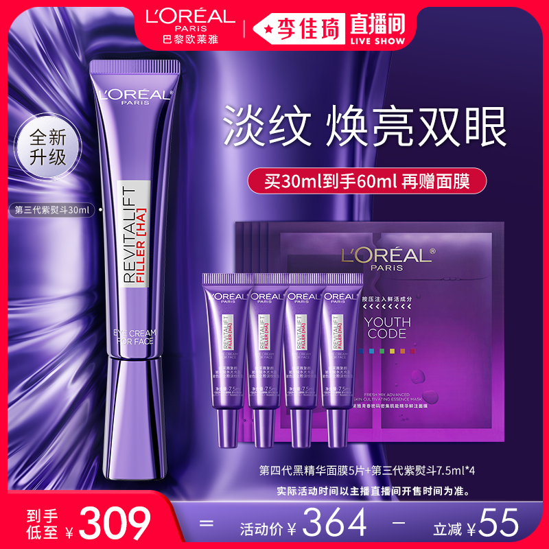 欧莱雅三代全新升级紫熨斗全脸眼霜保湿抗皱提拉紧致淡化细纹2370