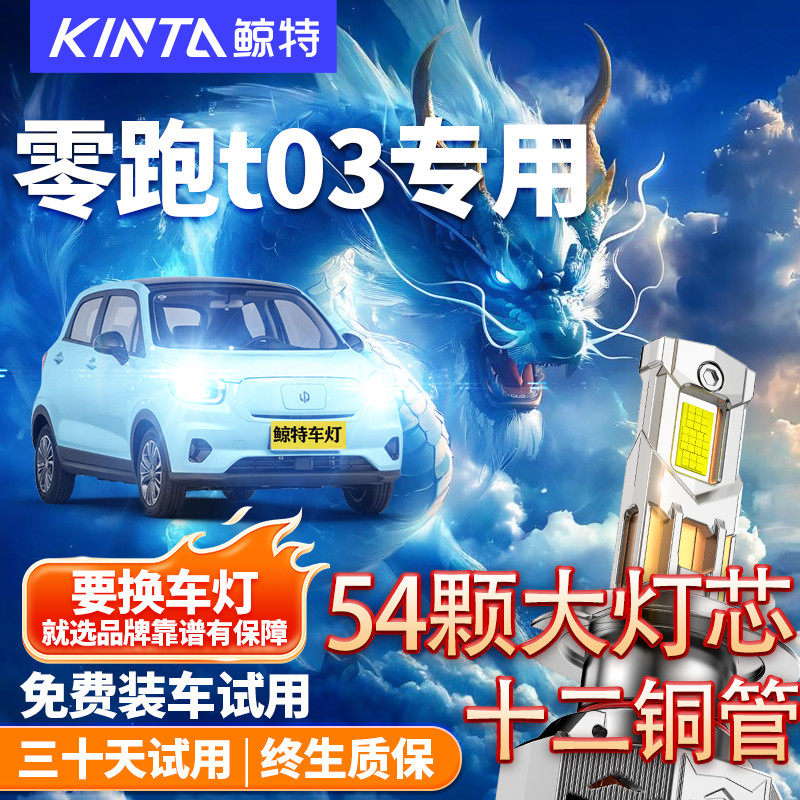 适用零跑t03led大灯泡强光专用远光近光一体超亮激光透镜车灯雾灯