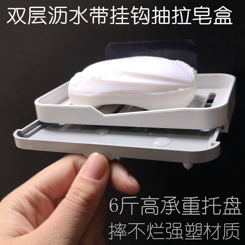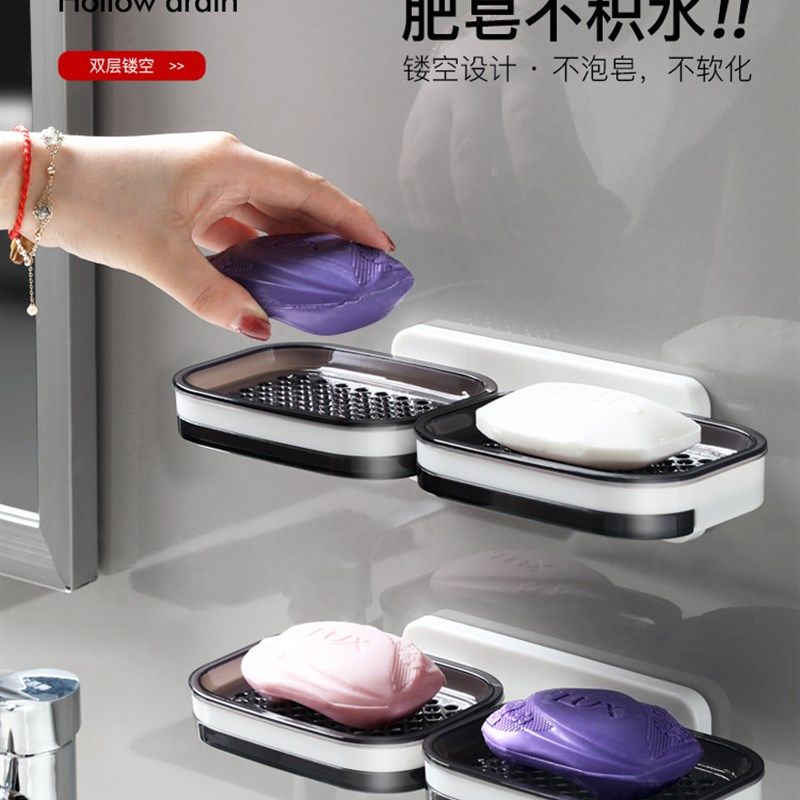 免打孔肥皂盒壁挂式家用高档卫生间沥水香皂置物架双层香皂盒吸盘