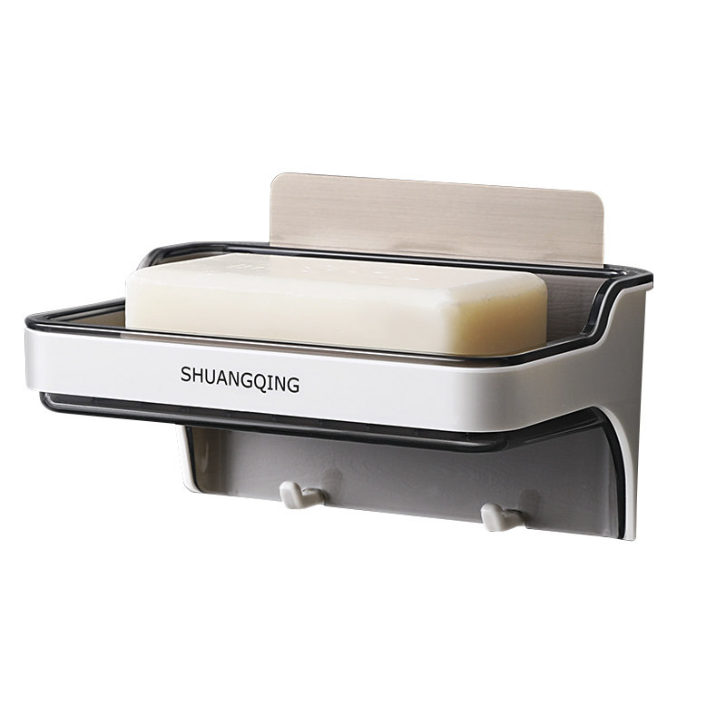 免打孔肥皂盒家用浴室厕所收纳香皂盒吸盘壁挂式多功能沥水置物架