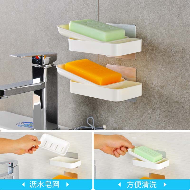 免打孔创意肥皂盒壁挂式香皂盒吸盘双层皂盒带沥水双格免钉肥皂架