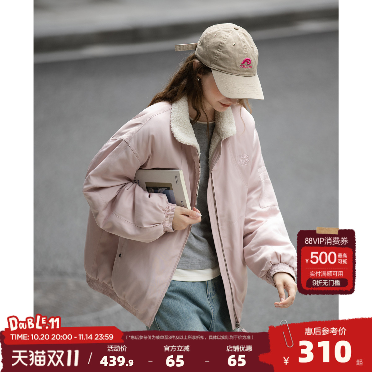 OV原创美式复古羊羔毛领加绒保暖外套女冬季短款正肩显瘦棉服棉袄