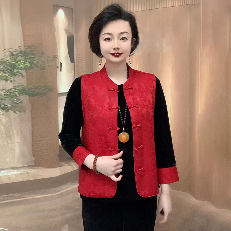 年货2026早春新款中式国风盘扣真丝提花高级感气质阔太太妈妈马甲