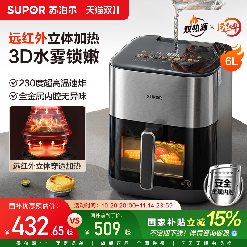 【旗舰新品】苏泊尔双热源空气炸锅远红外可视多功能智能6L大容量