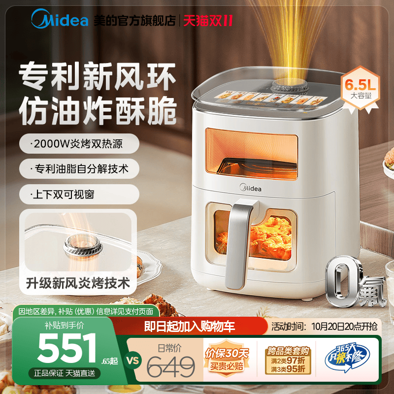 美的新风炎烤空气炸锅家用2025新款多功能电烤箱双可视智能电炸锅