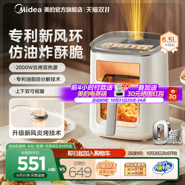 美的空气炸锅家用智能大容量免翻面可视一体多功能电烤箱官方旗舰