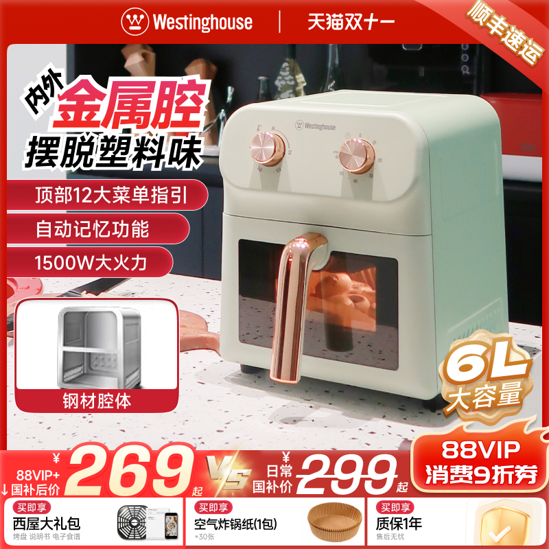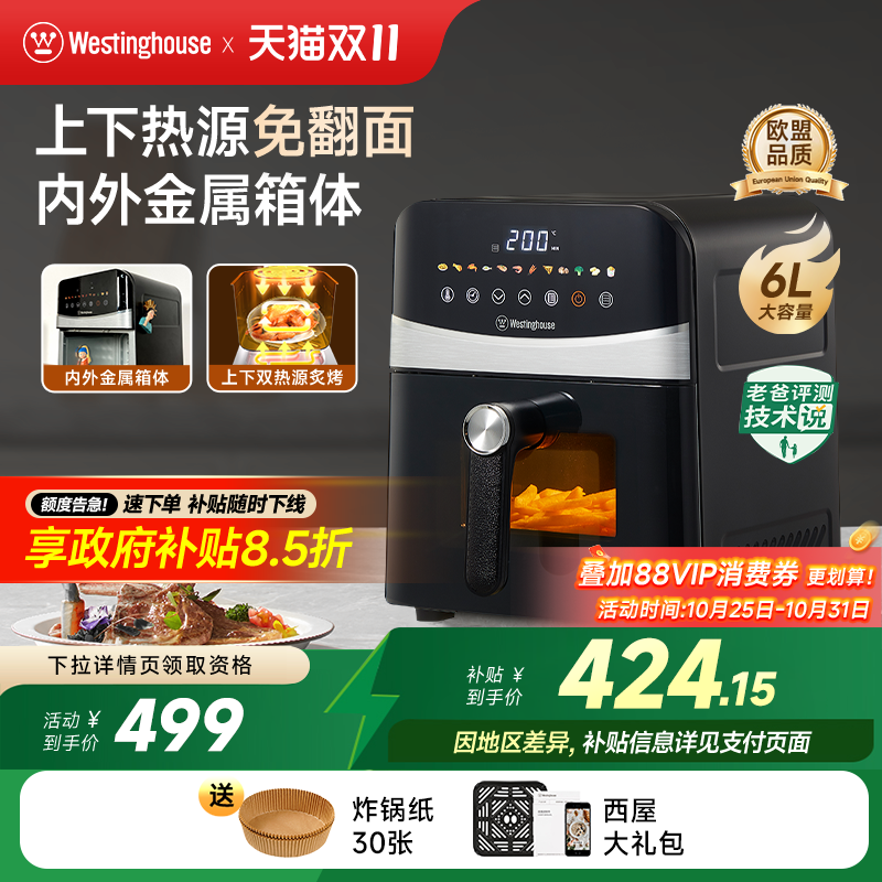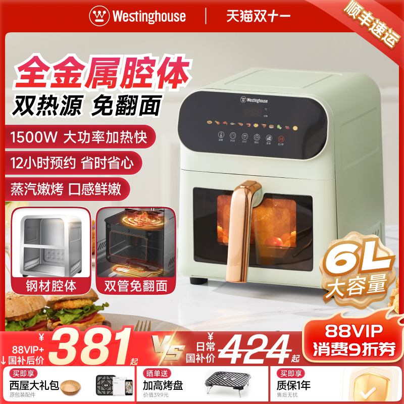 西屋全金属腔体空气炸锅烹饪机6L上下双热源多功能电烤箱政府补贴