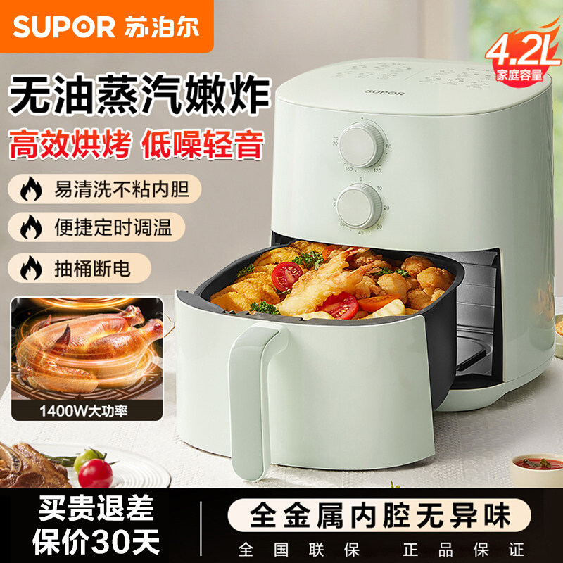 苏泊尔空气炸锅家用免翻面多功能4.2L大容量蒸汽电炸锅 2025新款