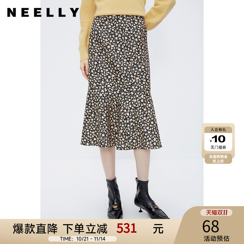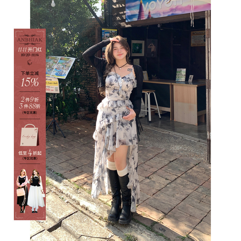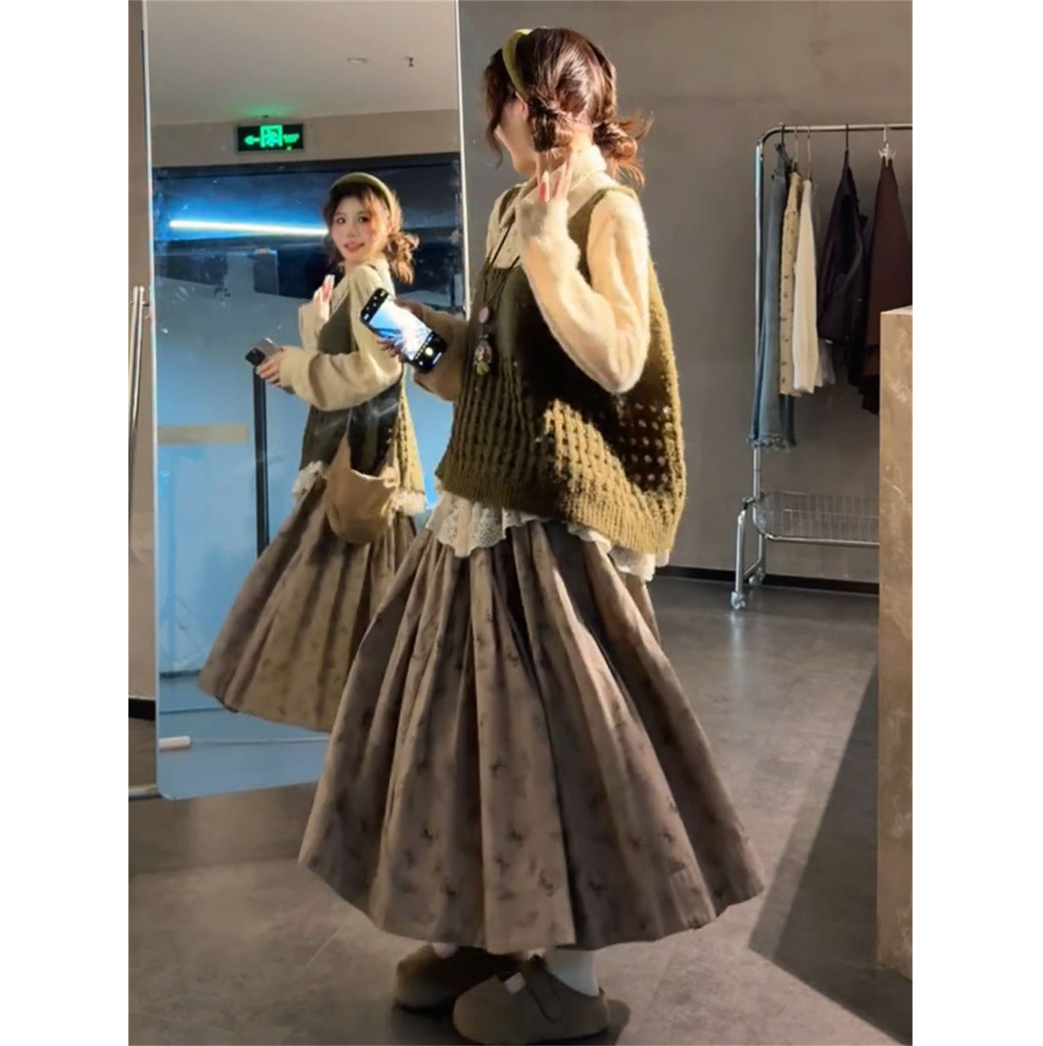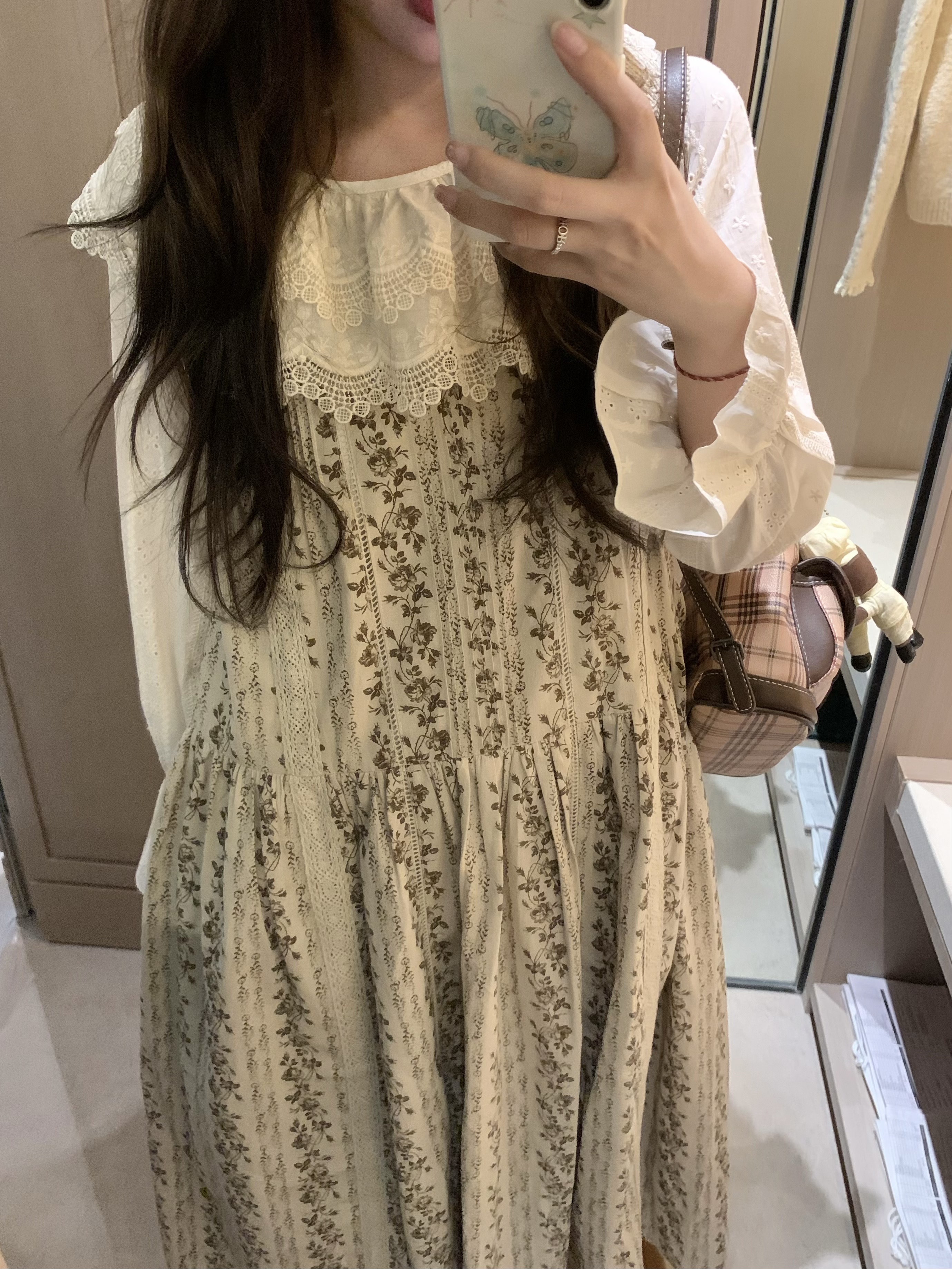 - 小四原创 欧洲站秋冬装新款碎花加绒加厚雪纺中长款打底连衣裙女