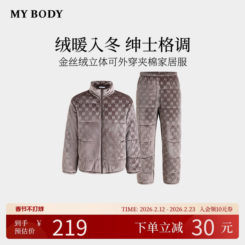 商场同款MYBODY冬季新款男士睡衣套装金丝绒立领可外穿夹棉家居服