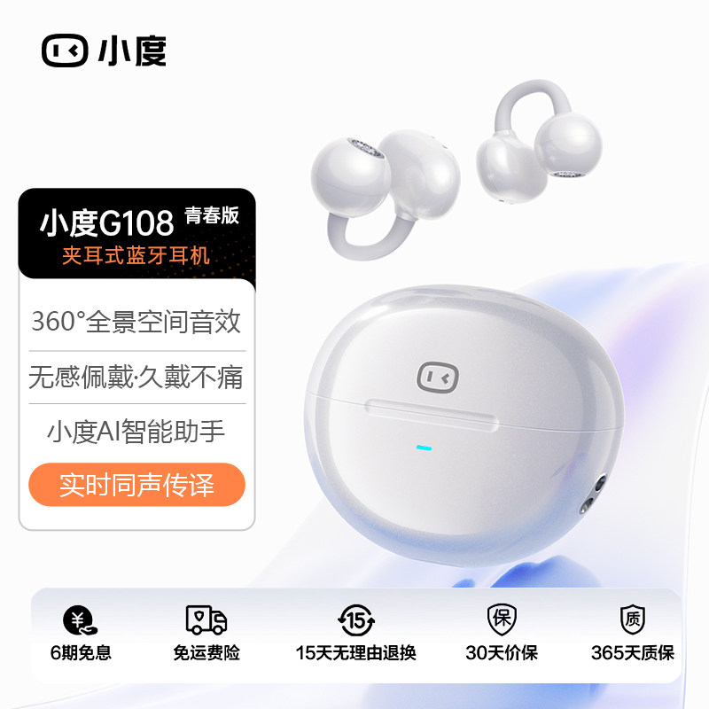 小度G108青春版AI无线运动户外夹耳式不入耳降噪适用苹果蓝牙耳机